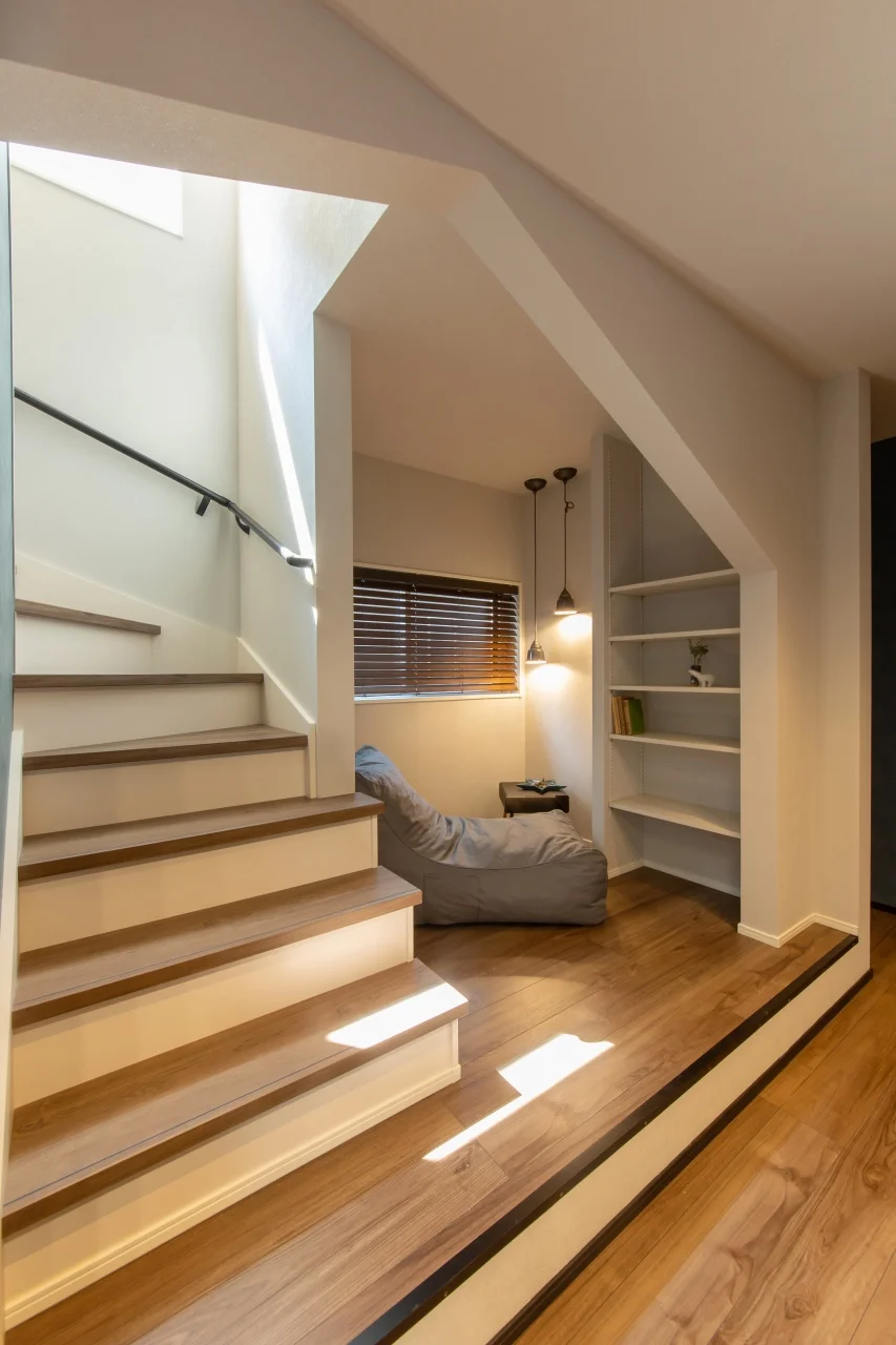 階段横に設けた「ヌック」が誰かの居心地の良い空間を造ります。
