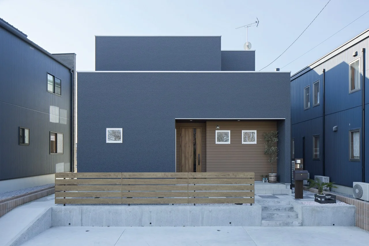 3ブロック組み合わせたような窓の少ない外観がおしゃれな家。
