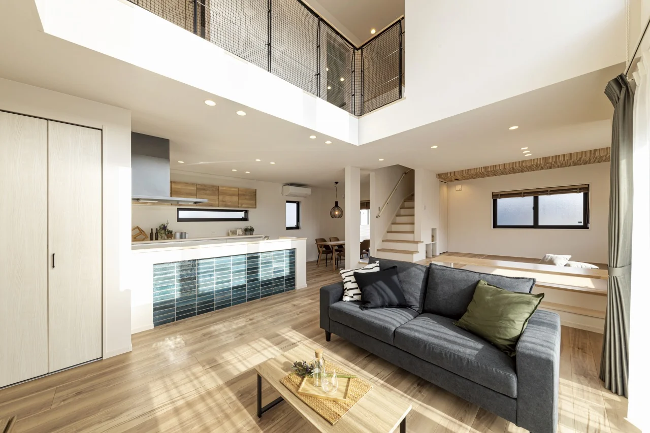 吹抜けをLDKと和室で囲むことで全体に光を取り入れられる間取り