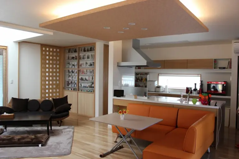 【173】木目と間接照明が印象的、開放的な家