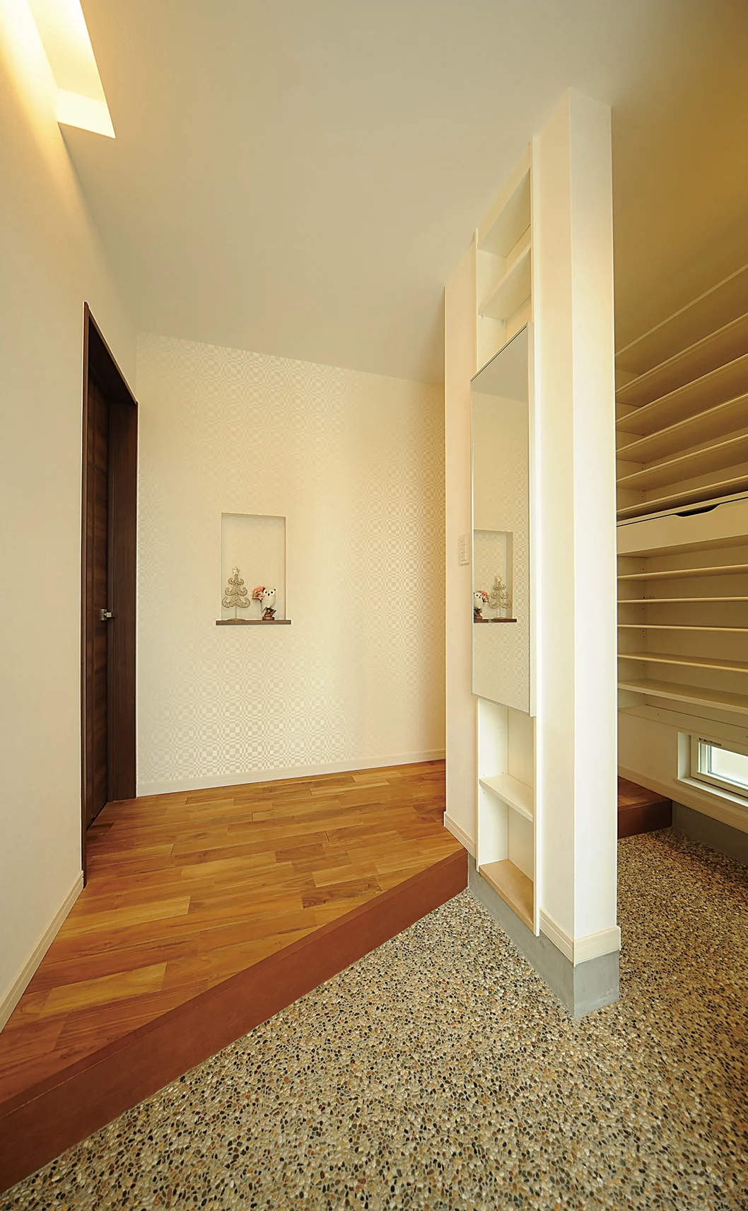【173】木目と間接照明が印象的、開放的な家