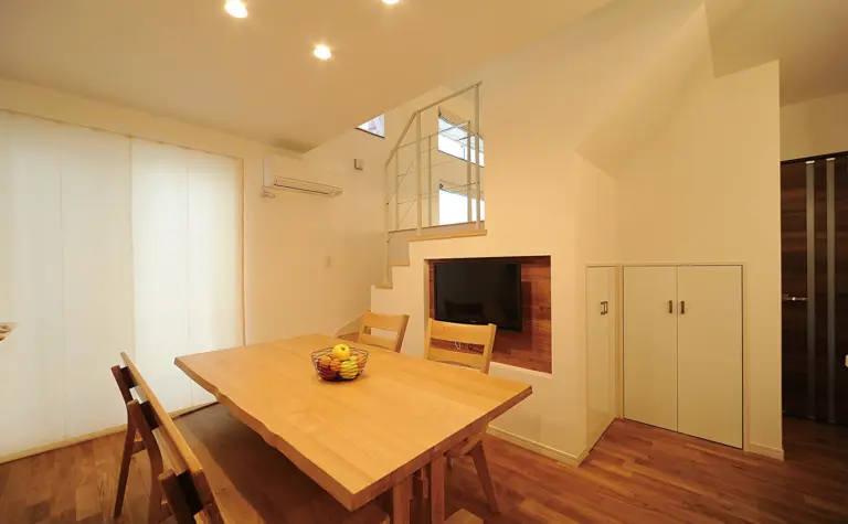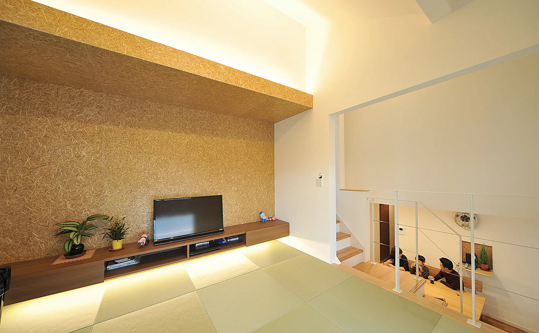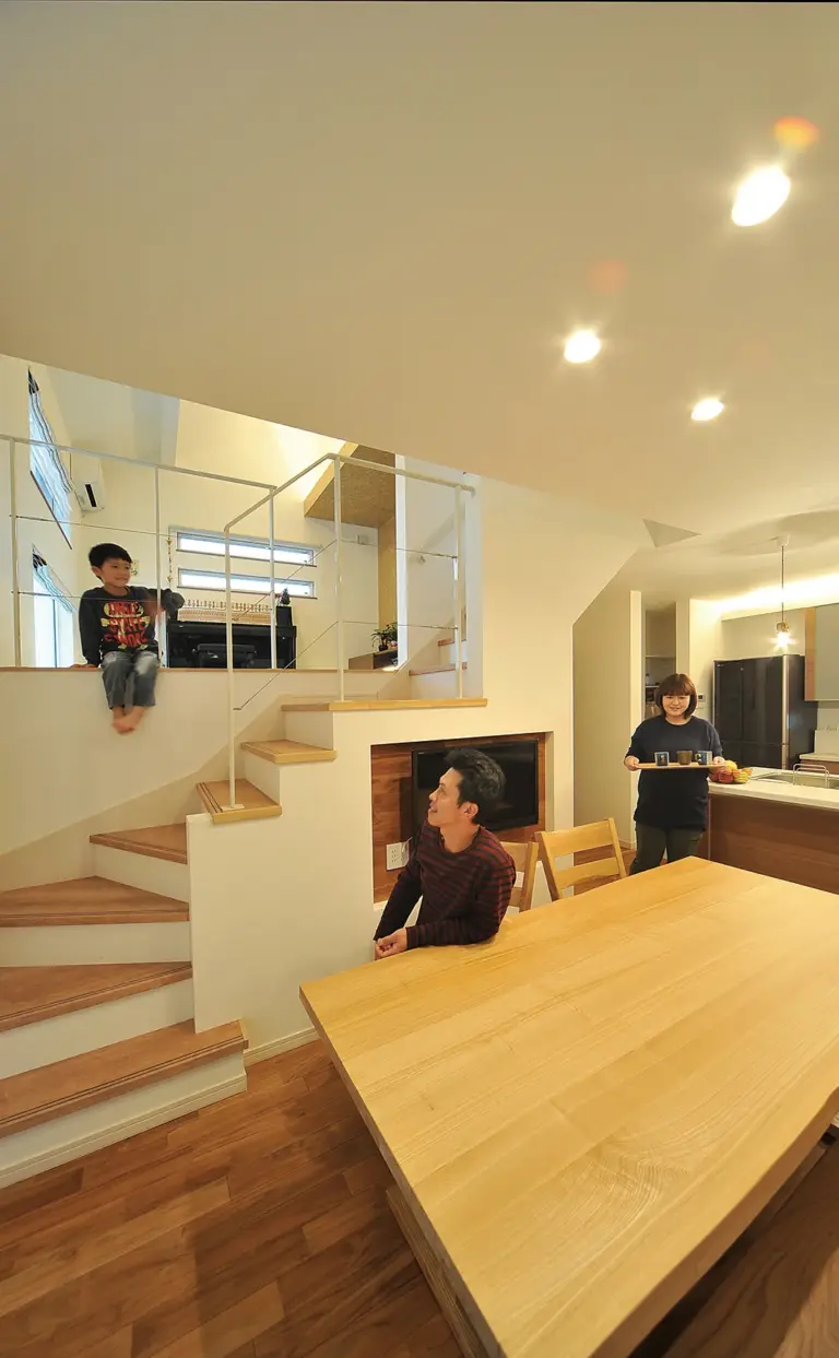 畳リビングのスキップフロアが生み出す程よい距離感が、家族の暮らしにメリハリを与えてくれる。