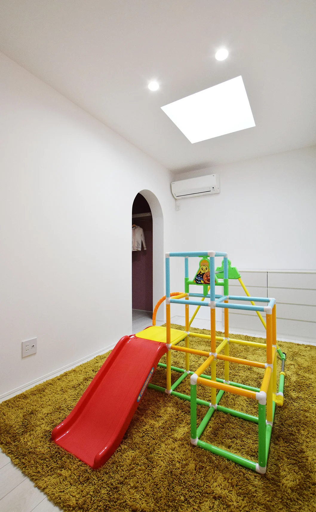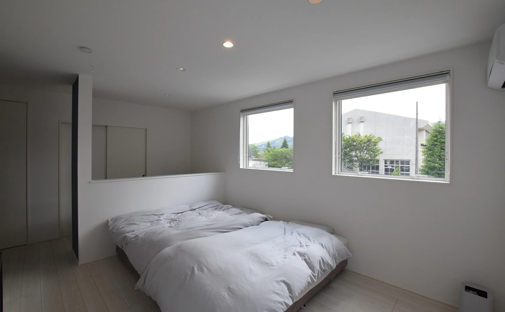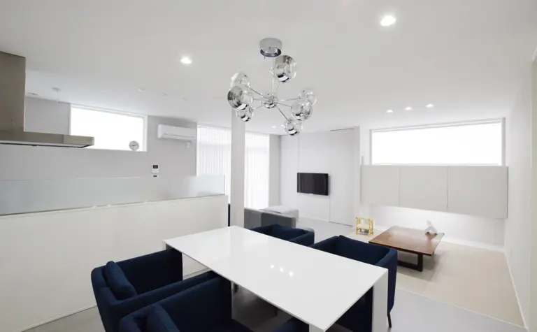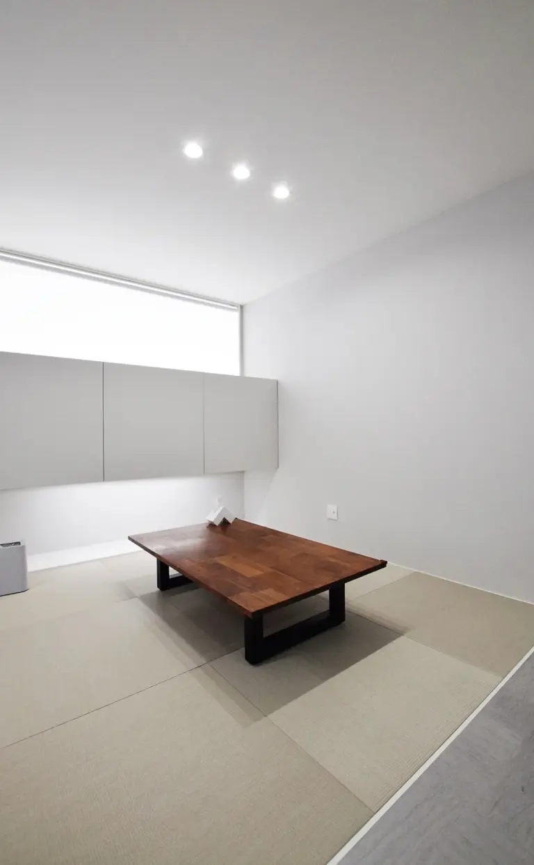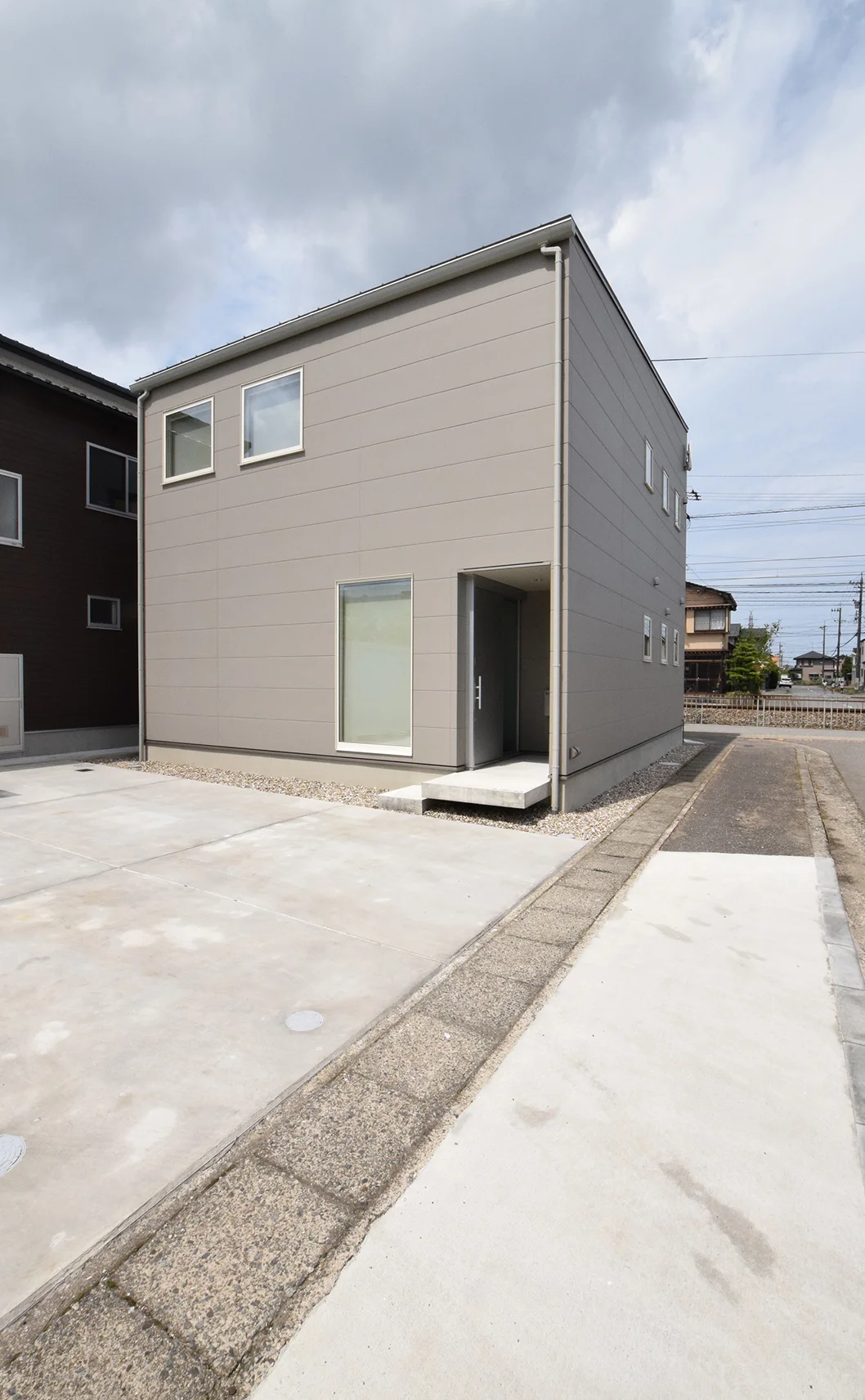 「お家らしいお家を作りたくない。」施主様の一言から始まった、シンプルで無機質な空間づくりの追及。家族専用のシュークロークやパントリー、壁と同色の造作収納に生活用品や家電をすべて納めることで、スタイリッシュな空間を実現しました。