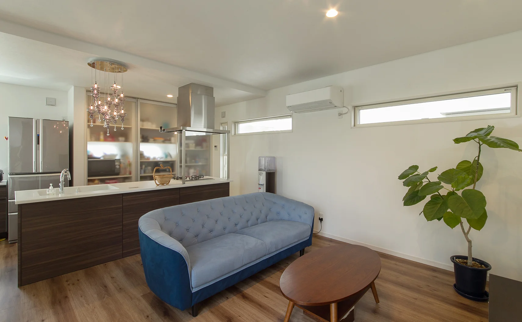 ホワイトとブラウンで統一したカラーコーディネートで、自然な暖かみのある現代的な住まいです。